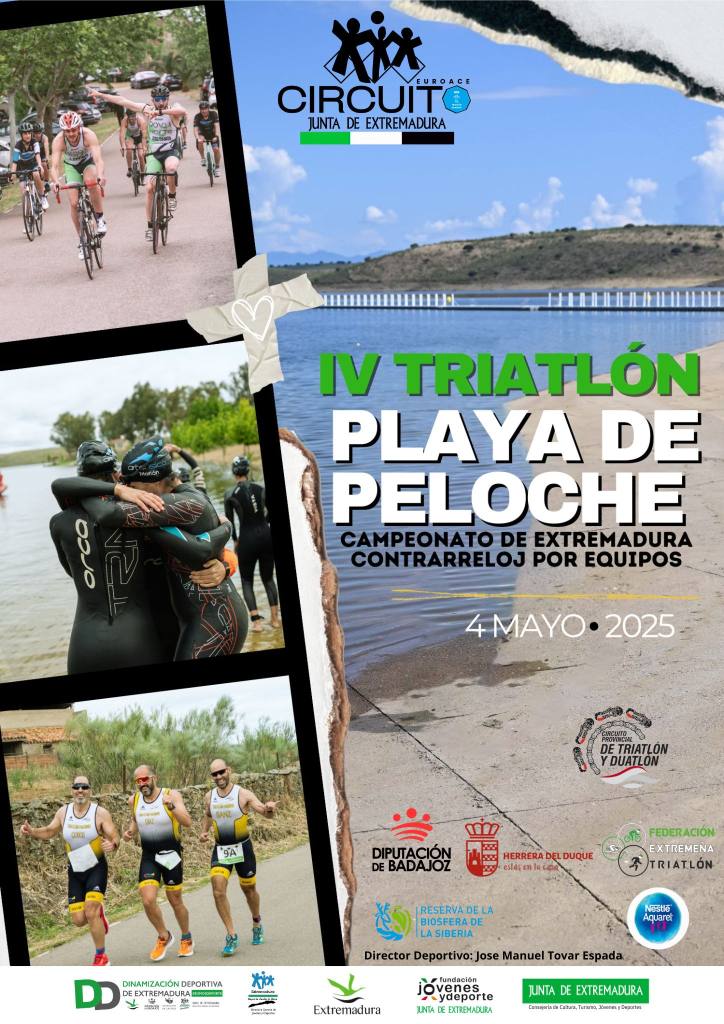 El Triatlón Playa de Peloche, acogerá dentro de su programa de competiciones el Campeonato de Extremadura de Triatlón Contrarreloj por Clubes. Aunque la inscripción es libre y en formato OPEN, por lo que podrán participar Equipos formado tanto por deportistas de otros clubes o comunidades autónomas, o deportistas sin licencia federativa